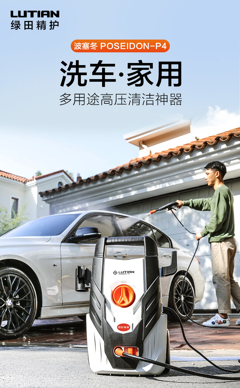 绿田 LUTIAN 高压清洗机 家用清洗机 洗车水泵220V小型家用摩托车汽车用品摩托车 波塞冬P4