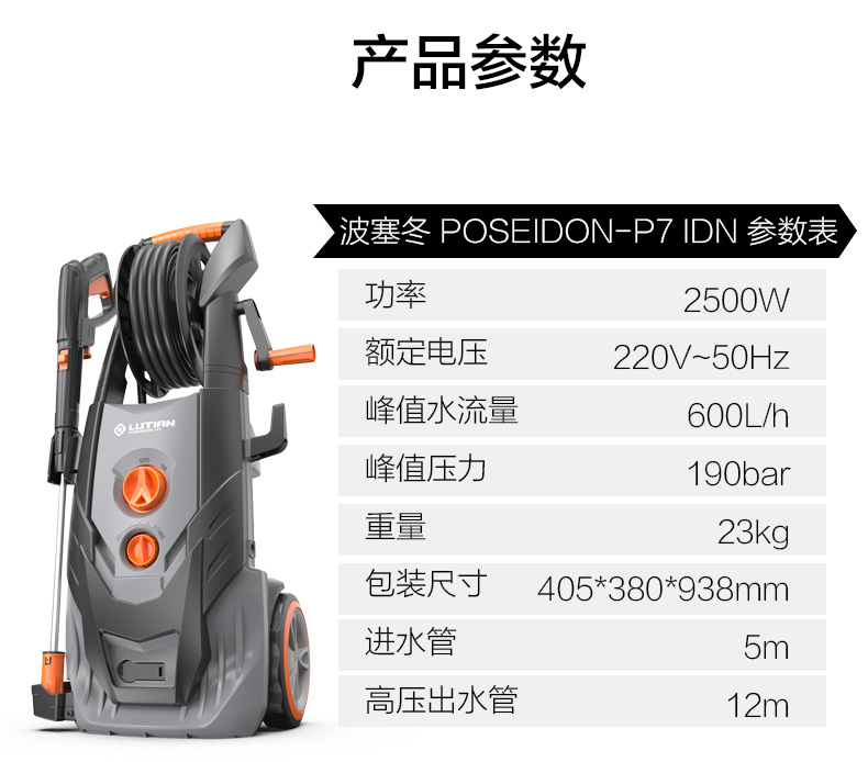绿田 LUTIAN 家用洗车机 高压清洗机 大压力庭院洗车神器 高端洗车泵 刷车工具 汽车用品摩托车 波塞冬P7