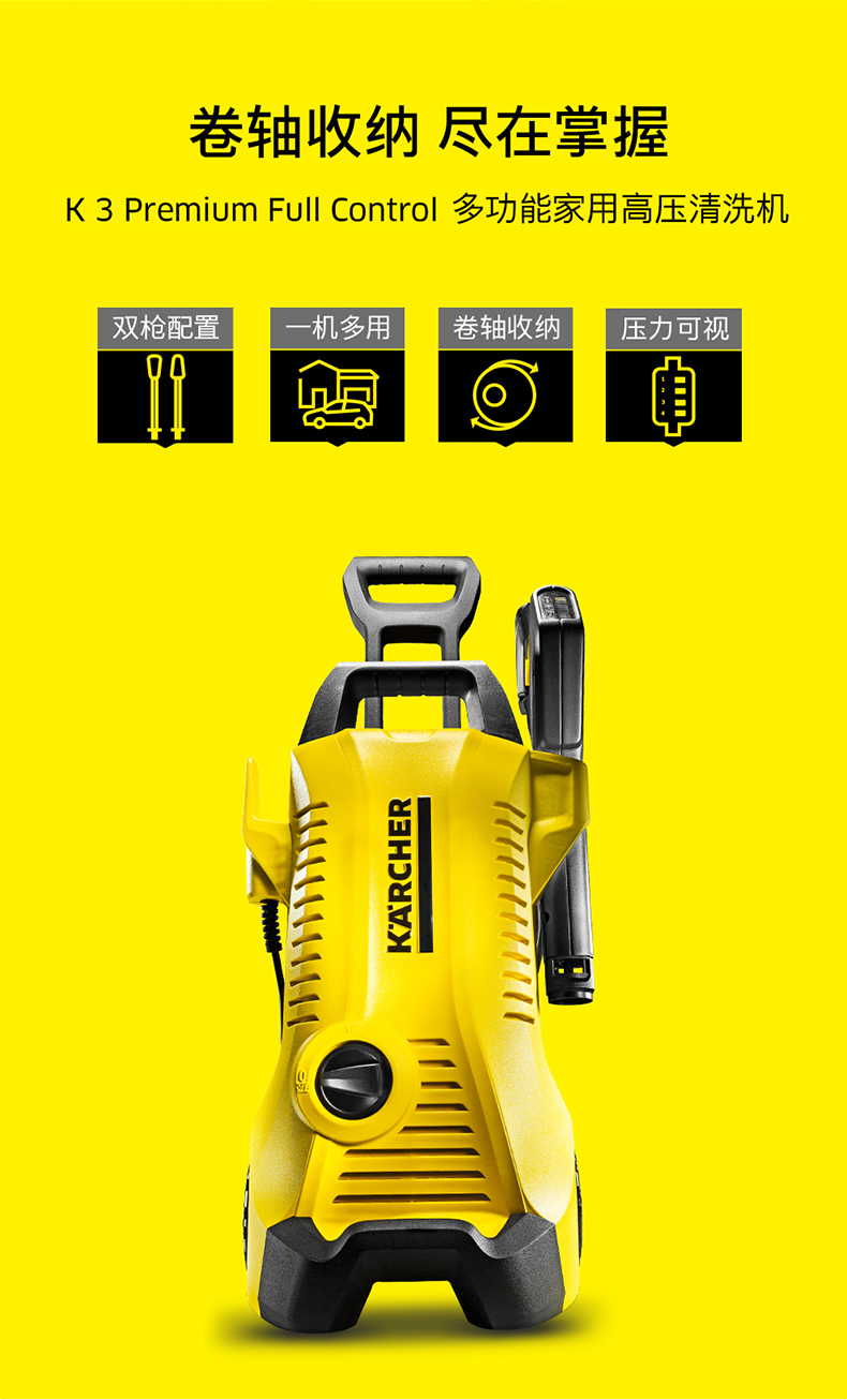 KARCHER卡赫 家用高压清洗机 洗车水枪高压清洗机 洗车泵摩托车德国凯驰集团K3Premium Full Control
