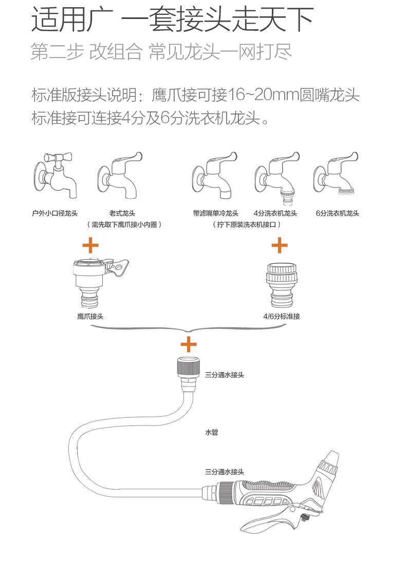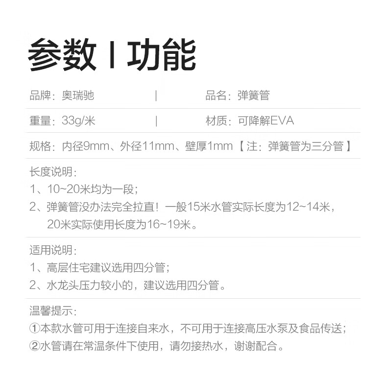 材质:合金;适用环境:汽车,摩托车,电动车,自行车,庭院,园艺,宠物,酒店,工厂,物业,牧场;水管类型:伸缩水管;喷头水花类型:花洒,雾状,水柱;接口材质:铝合金;喷头材质:铝合金;手柄类型:掌压式;水管长度:6~10m;品牌:奥瑞驰;包装清单:洗车水枪 x 1、接头 x 4、生料带 x 1、10米弹簧管 x 1;;
