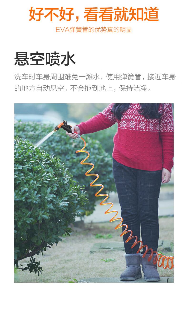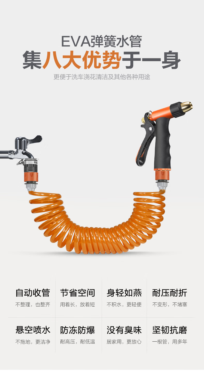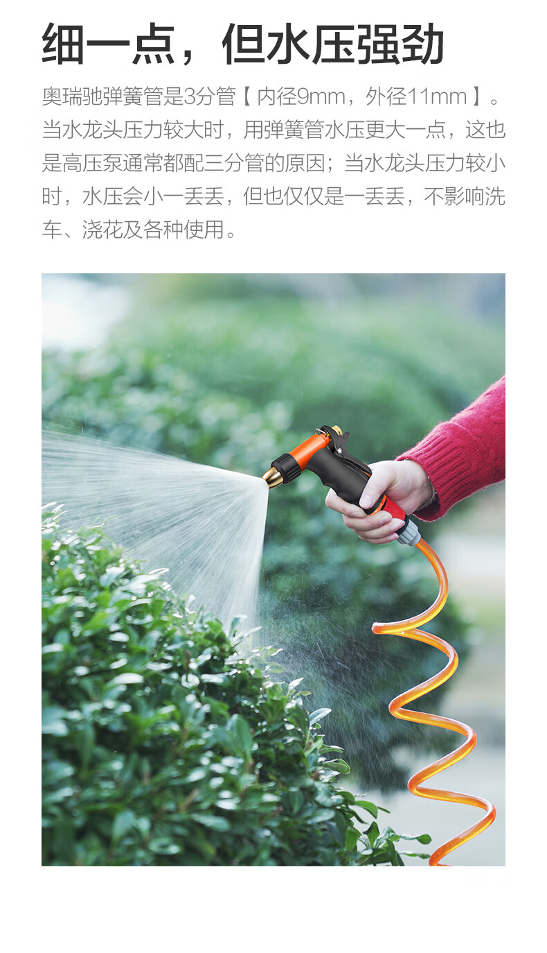 奥瑞驰高压水枪家用刷车浇花喷枪弹簧水管洗车神器清洗摩托车伸缩软管浇地冲车套装 H3+接头+10米弹簧管