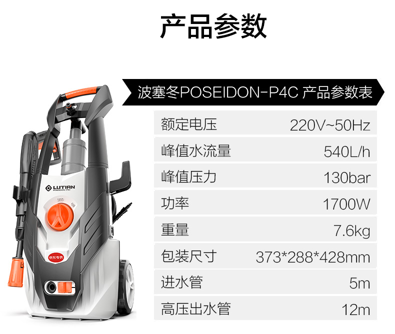 绿田 LUTIAN 家用洗车机 高压清洗机水枪洗车神器 空调庭院洗车神器刷车工具 汽车用品摩托车 波塞冬P4C
