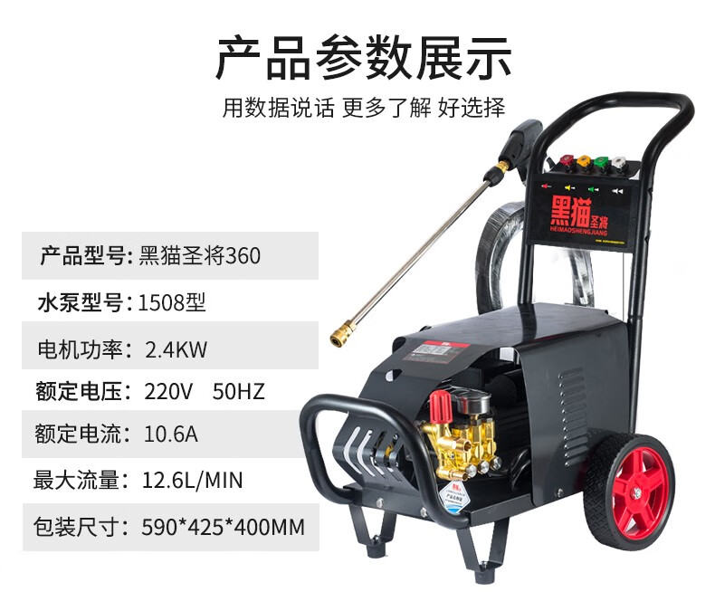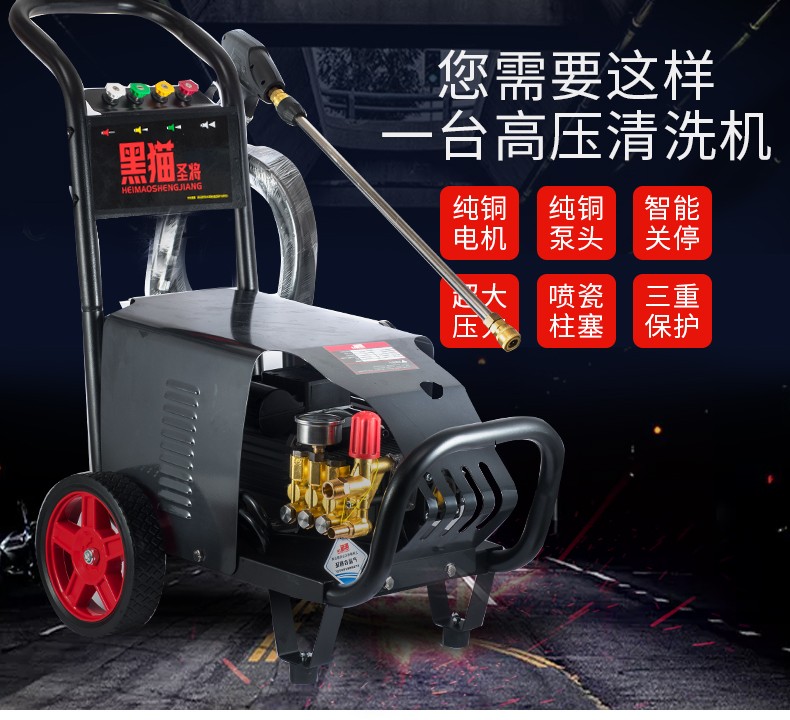 黑猫220v商用洗车机高压清洗机洗车设备洗车泵洗地机大功率洗车机工具