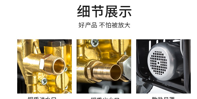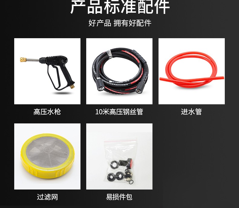 水源类型:自吸,水龙头;电机冷却:风冷;适用环境:汽车,摩托车,电动车,自行车,庭院,园艺,宠物,酒店,工厂,物业,牧场,生鲜,市政;用途类型:商用高压;电源类型:220V;外观类型:推车式;额定压力:111bar以上;水管长度:10~20m;电机类型:感应电机;产品品牌:绿霸;产品型号:HM-360;包装清单:主机一台,进水管两根,出水管一根,水枪一把,泡沫壶一个,说明书一本;