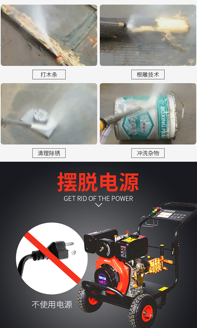 博赫尔3600DF超高压柴油洗车机 商用工业剥树皮柴油动力高压清洗机 洗车泵喷砂除锈打根雕户外清洗水枪水泵