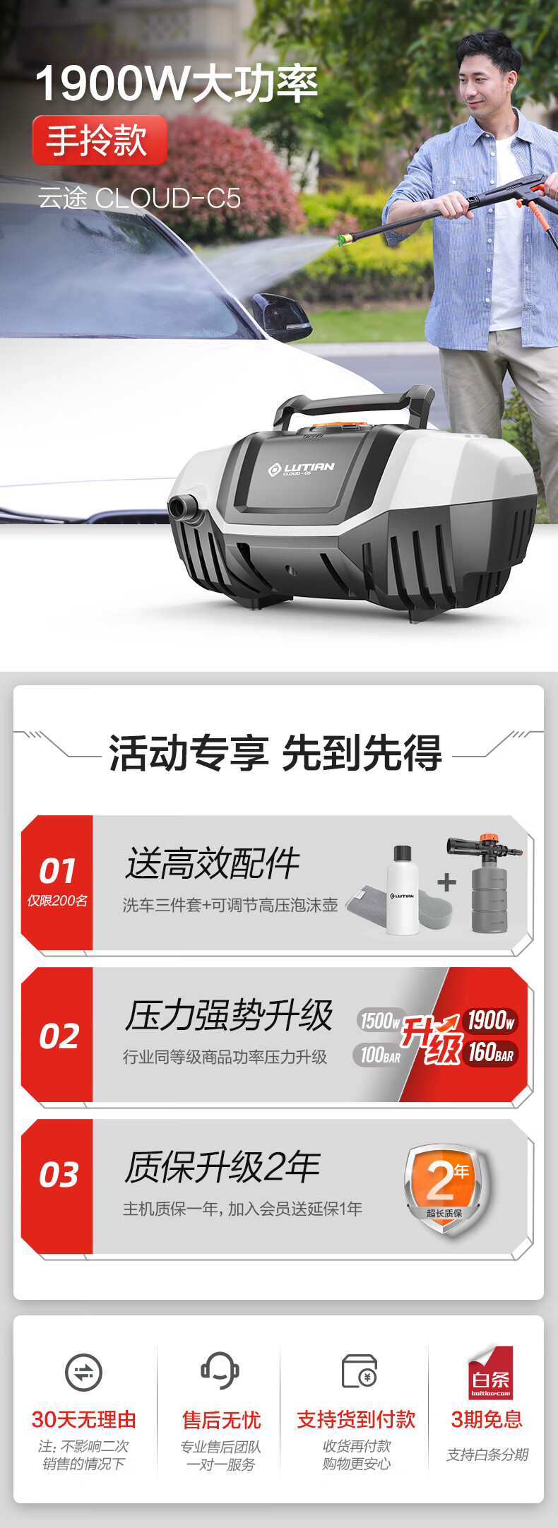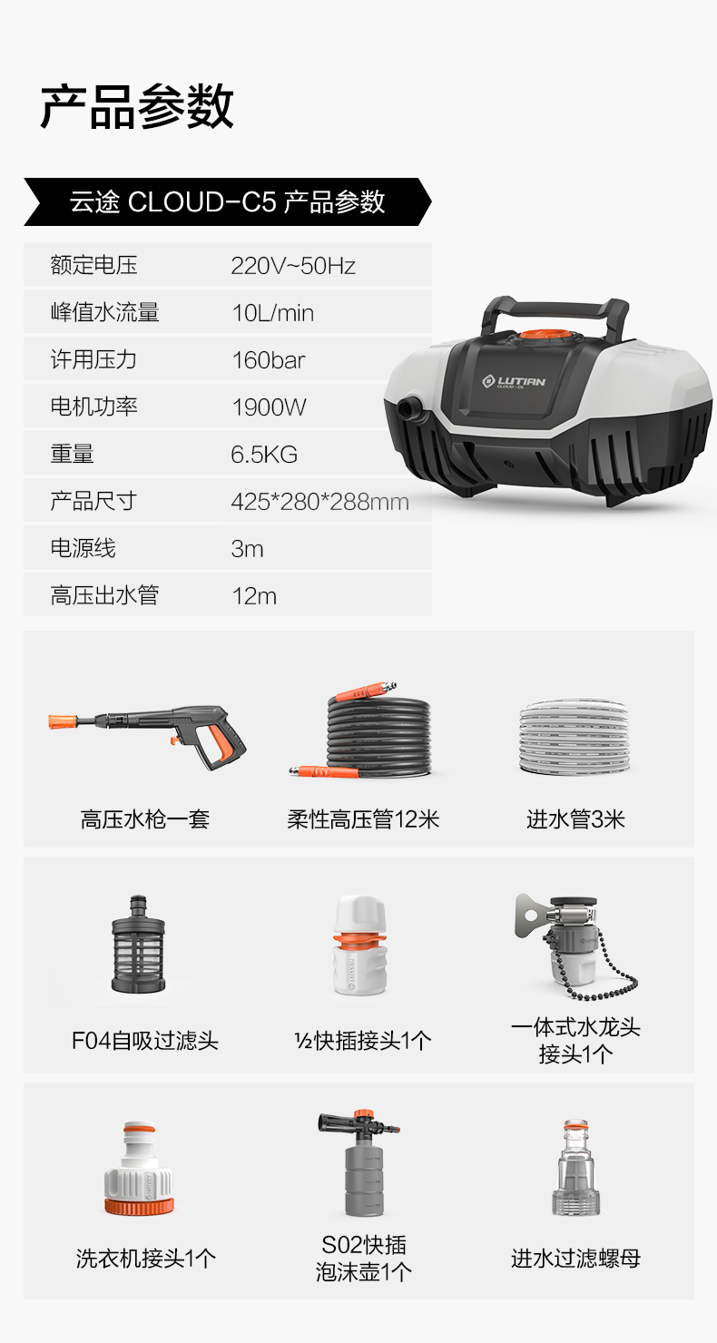 绿田 LUTIAN 高端家用洗车机 洗车神器半商用高压清洗机 空调物业洗车泵云途CLOUD-C5 220v 汽车用品摩托车