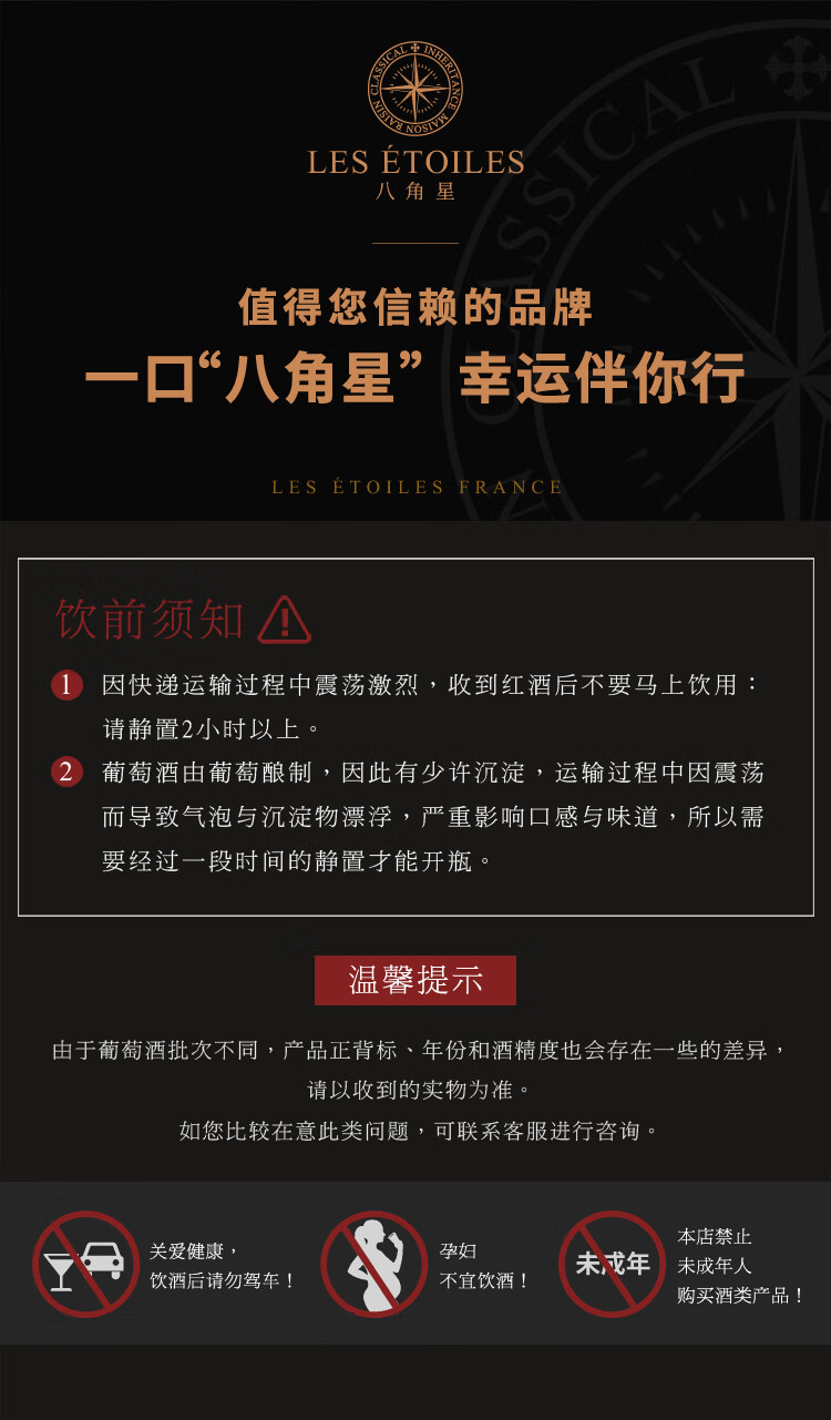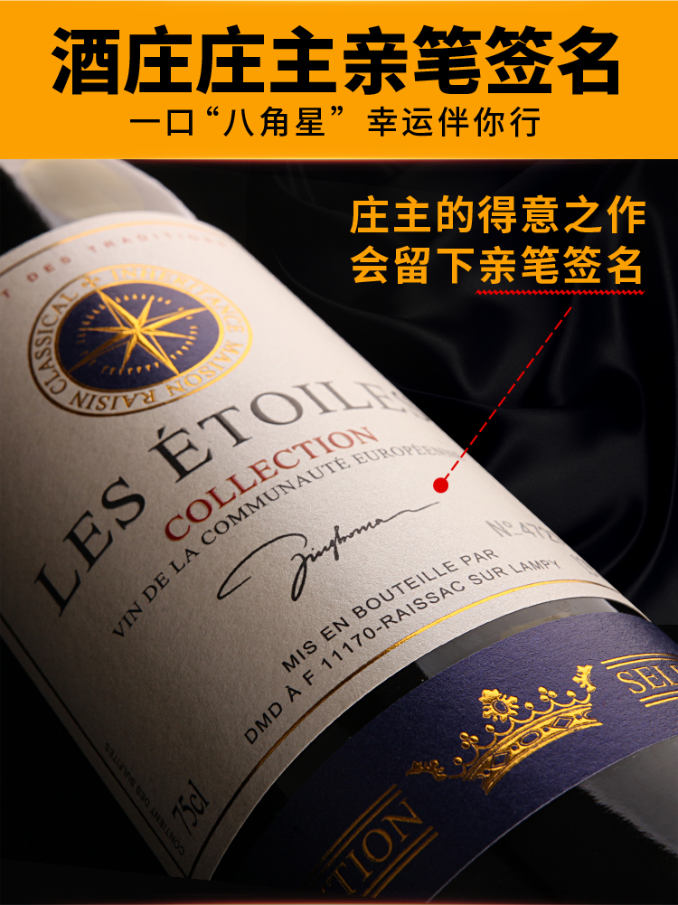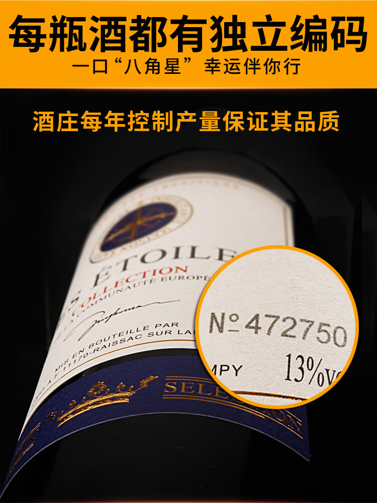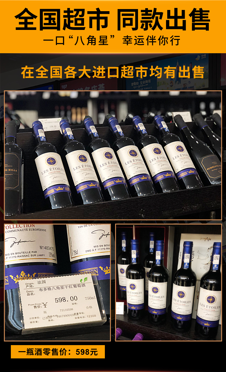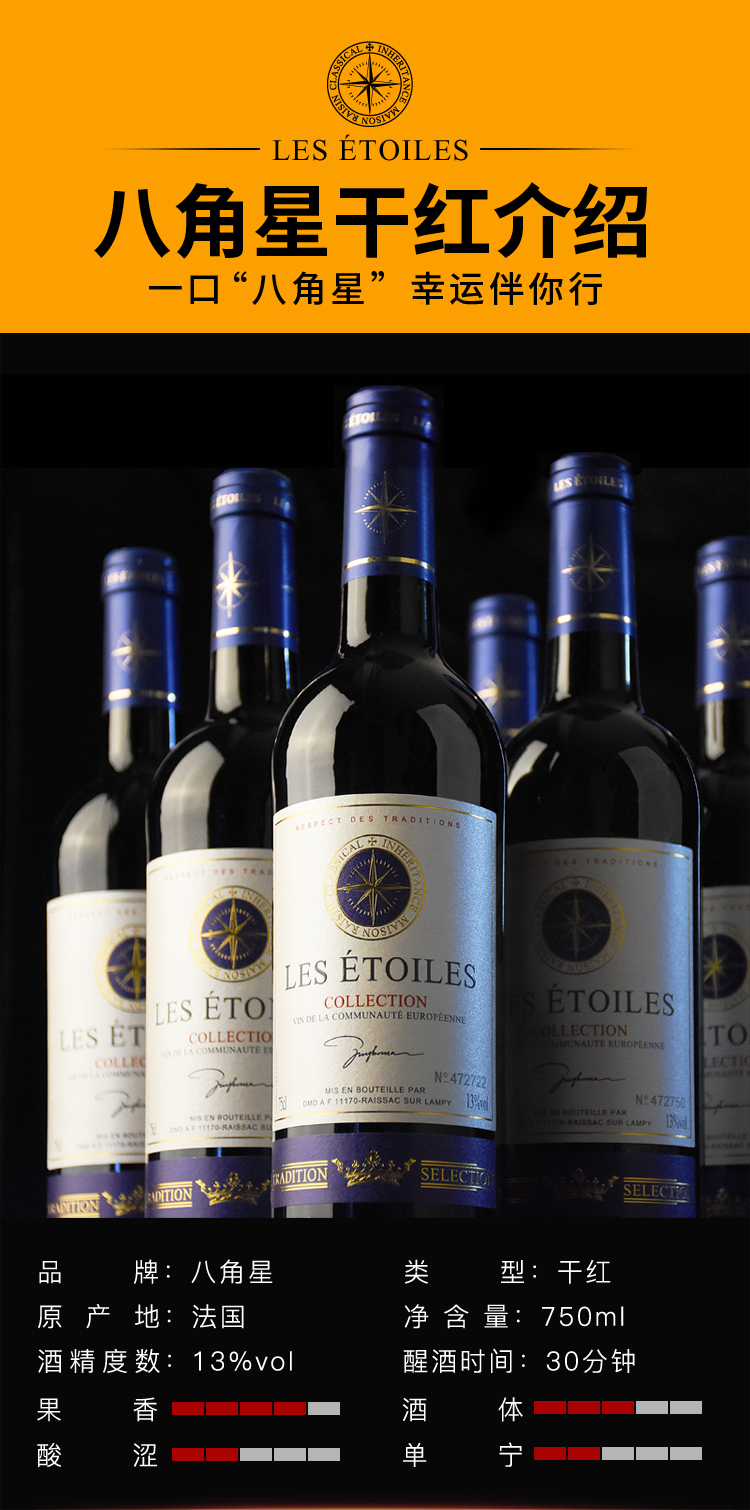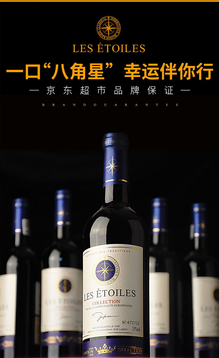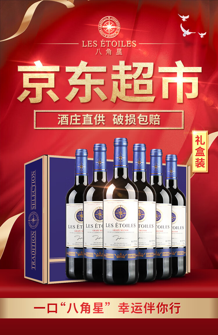 八角星(LES ETOILES)法国原瓶进口红酒 八角星干红葡萄酒礼盒装750ml*6瓶