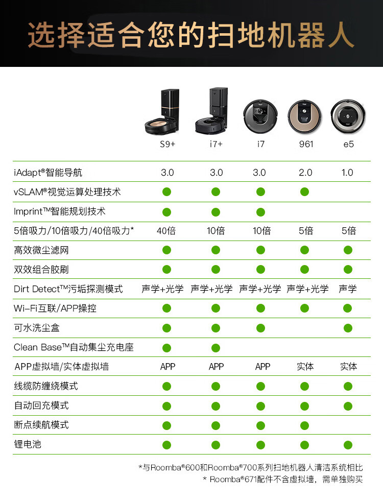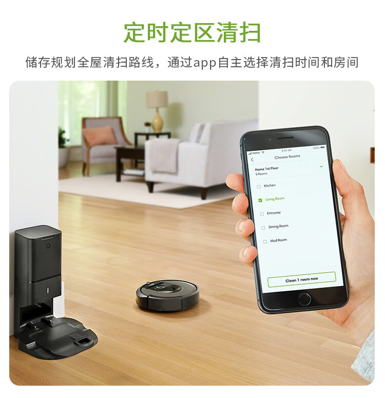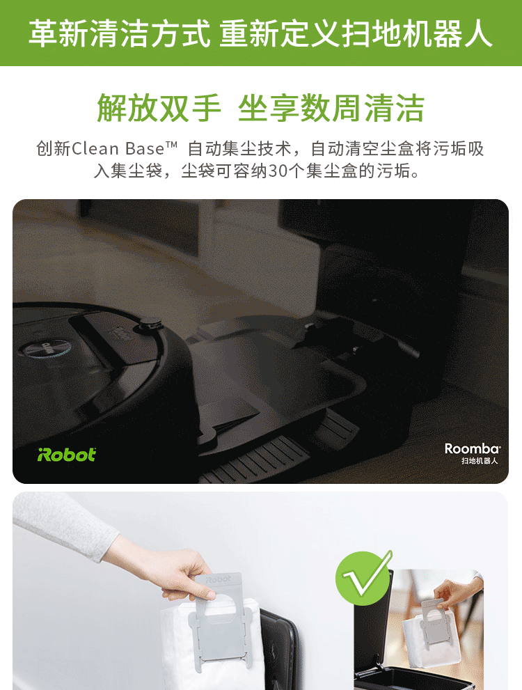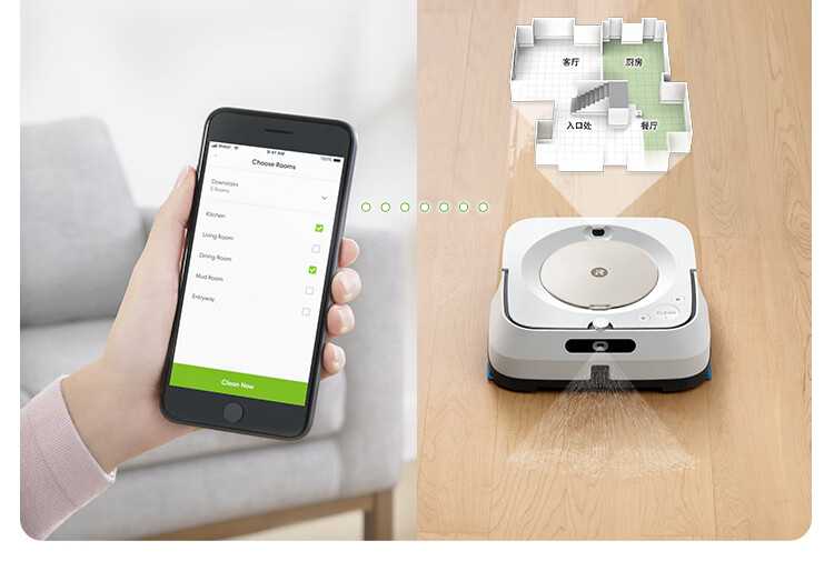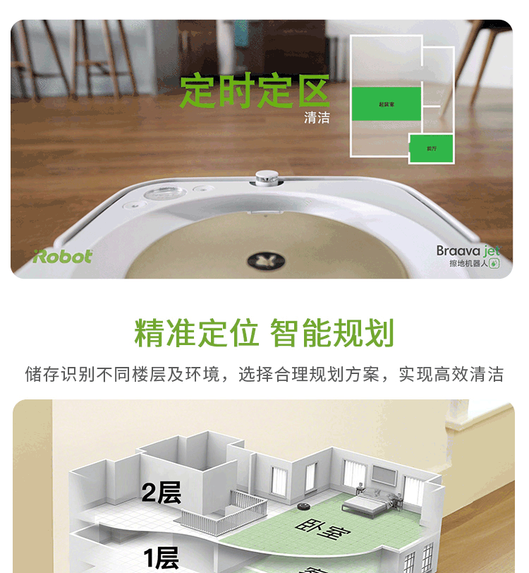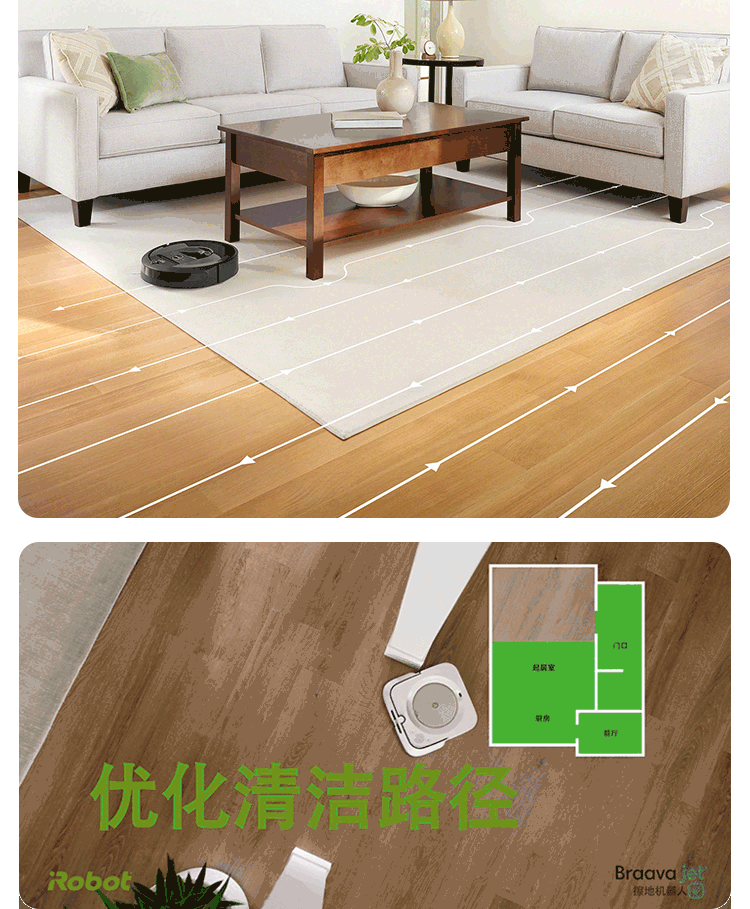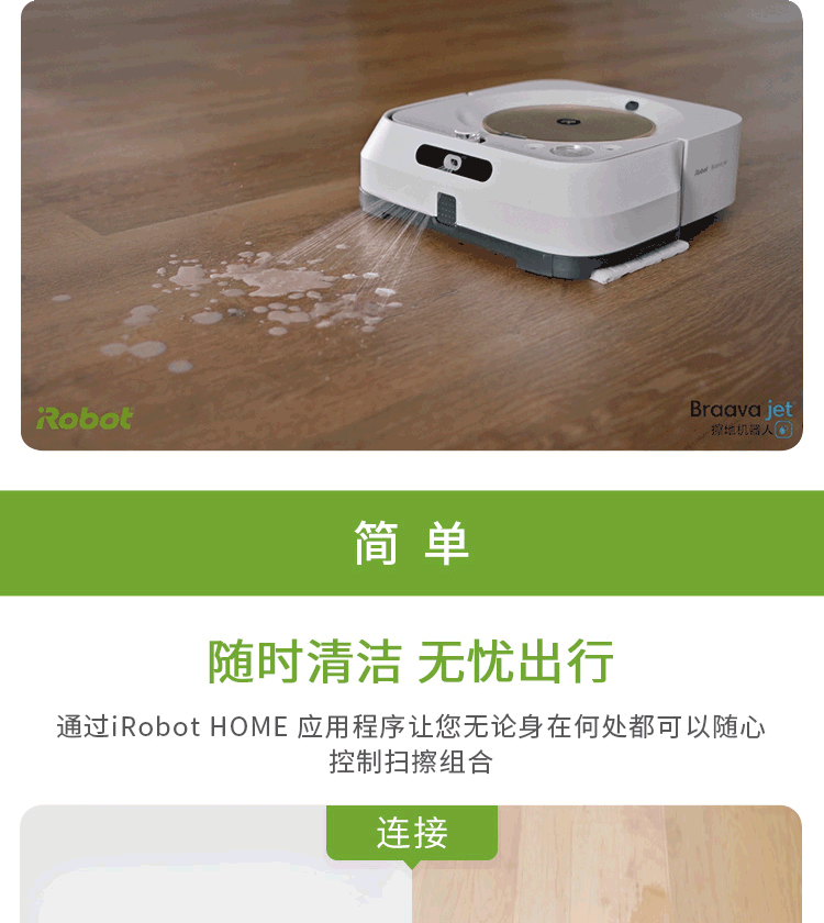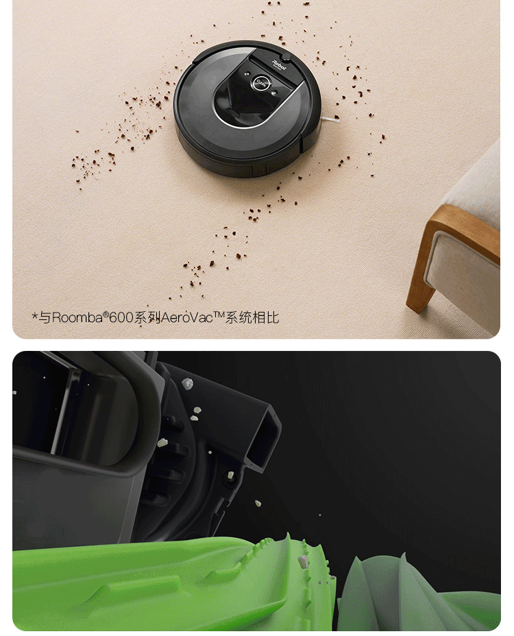 产品类型:扫擦套装;虚拟墙类型:硬件虚拟墙;防撞类型:机械撞板;电池类型:锂电池;特色功能:APP控制,自动清扫模式,灰尘识别感应器,定时预约,拖地功能;清洁类型:滚刷吸口互换;电池节数:6节;机身高度:9-10cm;电池容量:1999mAH以下;适用面积:120平以上;水箱容量:250毫升以上;规划技术:单目视觉规划;拖地/水箱类型:电控水箱;电机类型:无刷电机;续航时间:121分钟-180分钟;清扫路线:规划式;机身高度(cm):10cm;电池节数(节):8节;吸力(pa/aw):0pa/aw;噪音(db):60db;充电类型:自动回充;充电时间:约2H;续航时间(分钟):120分钟;品牌:iRobot;产品型号:Braava jet m6+Roomba i7+;产品尺寸(mm):429 x 145 x 540;额定功率(W):33W;水箱容量(L):0.45L;额定电压(V):220V;产品净重(kg):5.9kg;包装清单:i7扫地机器人*1、 Home Base充电座*1、电源线*1、虚拟墙 *1、滤网*1、边刷*1、clean base自动集尘充电座*1、电源线*1尘盒*1 、一次性集尘袋*2、m6擦地机器人*1、一次性湿擦清洁垫*2、可水洗干擦清洁垫*1、可水洗湿擦清洁垫*1、滴水盘*1、回充充电底座*1、电池*1、clean base 垃圾袋*3、iRobot 定制U盘*1、清洁垫*2、i7配件套装(边刷 *;