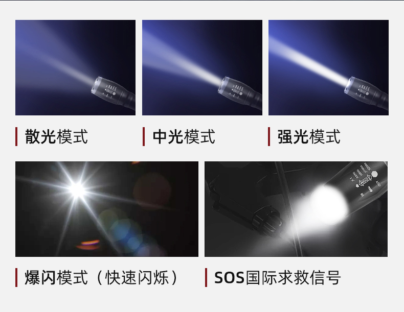 名典消防 强光手电筒变焦户外消防套装 迷你可充电远射探照灯 骑行 配多功能七合一消防哨