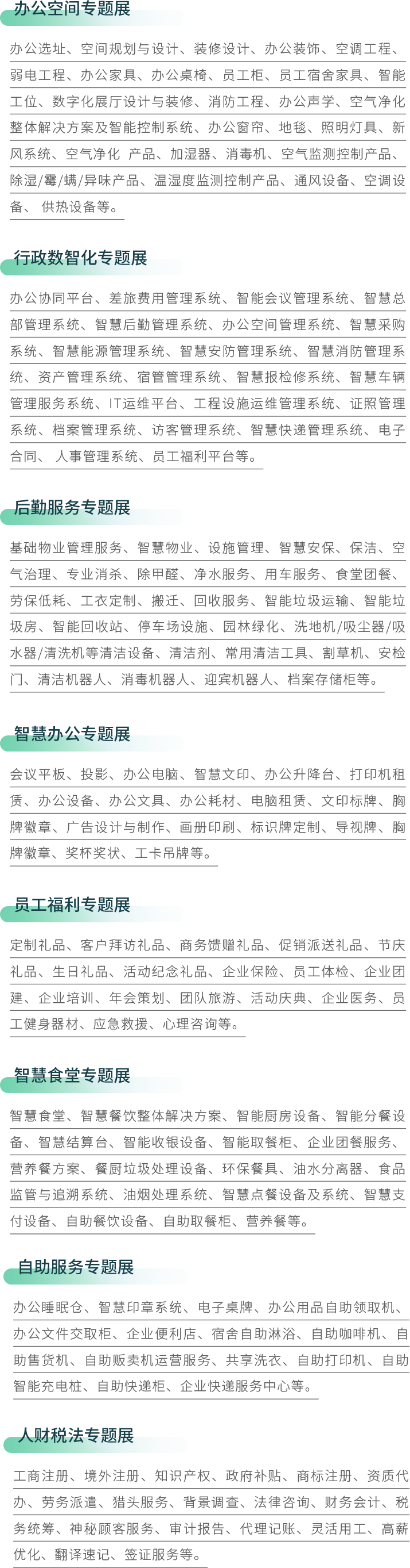 新形势下,把握企业行政后勤业务的采购需求,探索数字化采购的最新动向,跟踪国际人工智能在企业采购领域的最新应用,同步提高企业行政后勤管理数智化水平,专门为企业行政后勤设立了本届国际性的专业采购博览会。