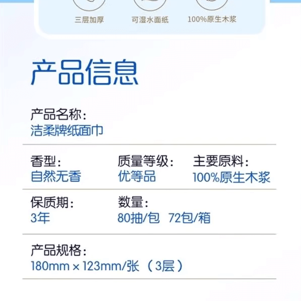 柔软亲肤 实惠 软抽 3层 80抽*72包